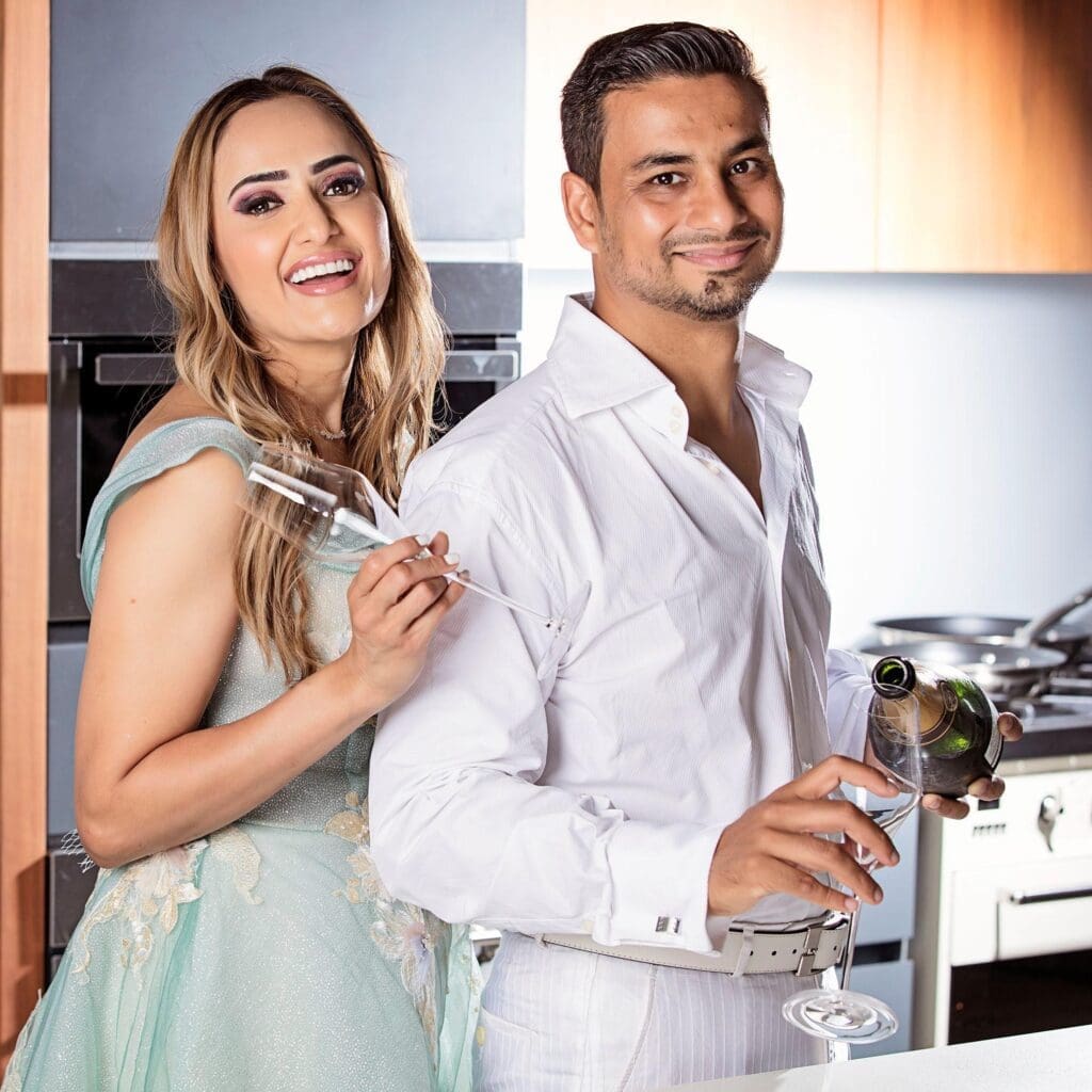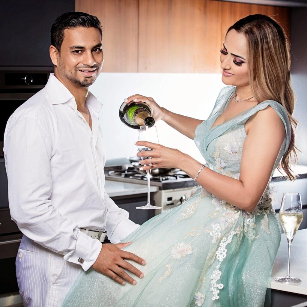 Shooting your engagement album at home allows you to mix up your photos and grab some different style shots in different rooms – consider a fun cook-off in the kitchen, some relaxed shots in the living room or garden and maybe a few spicy and intimate photos in the bedroom. You can even opt to include your pets in some of the photos because if you have fur kids, they are absolutely part of your love story, right?
