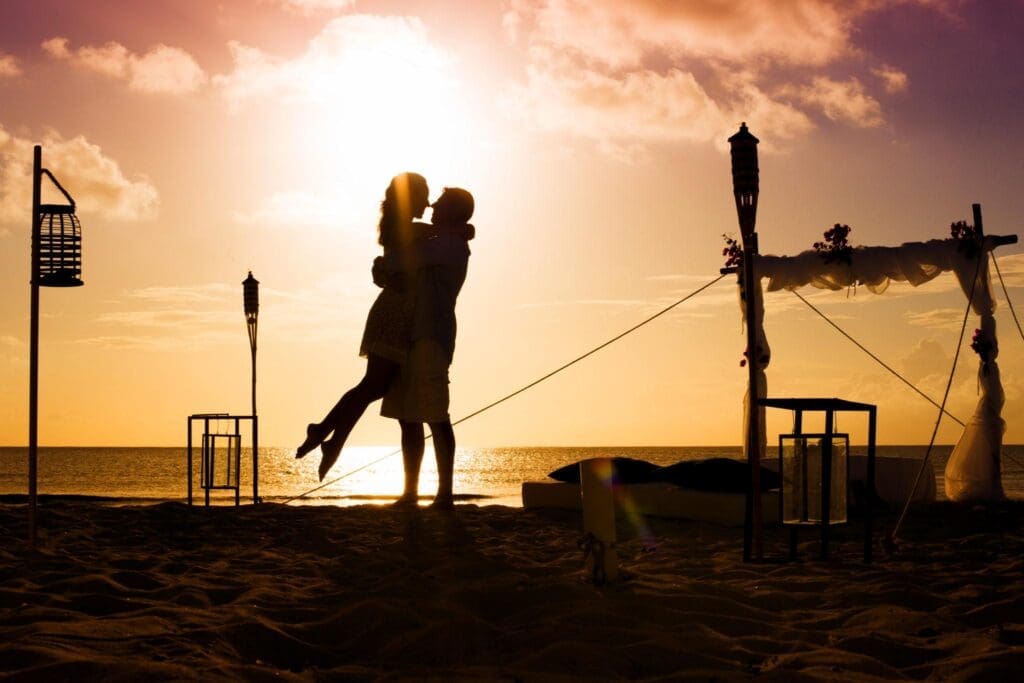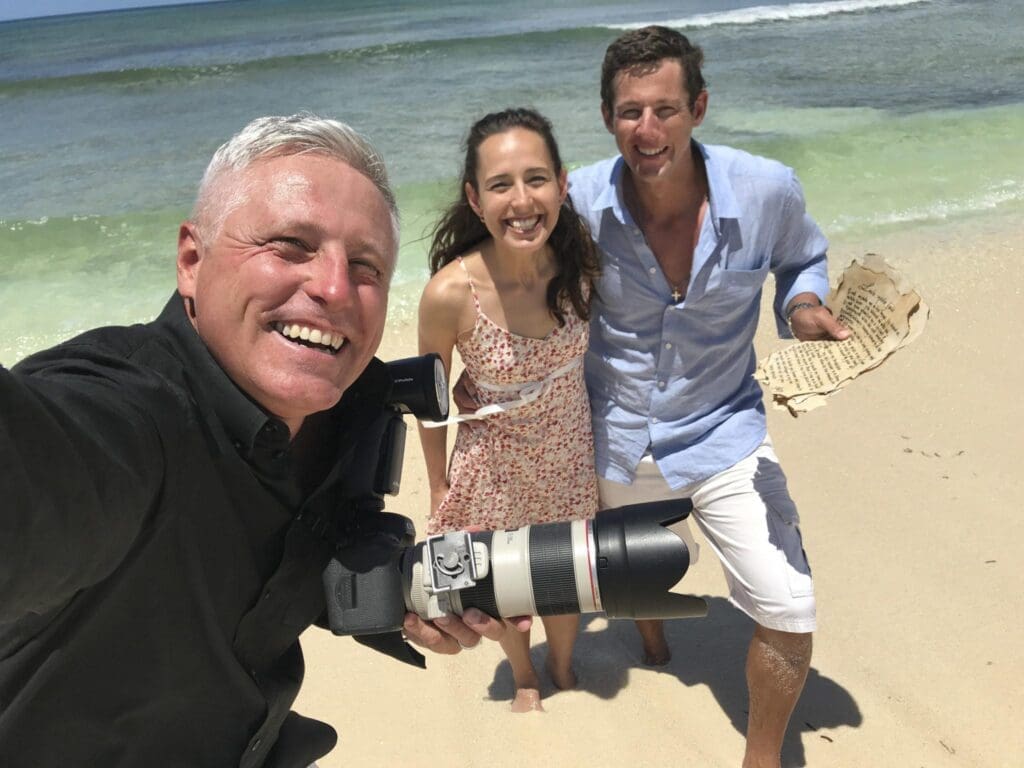 In the case of a proposal shoot, this is a must. When Dave flew to the Caribbean to shoot a proposal, the client who was about to propose organised for Dave to be met in Fort Lauderdale with an envelope of cash in the local currency, a few days ahead of the couple’s arrival. This enabled him to avoid baggage taxes by purchasing materials for the proposal in the destination country rather than needing to fly them in. Because the proposal was a surprise, Dave set the entire scene up. He went to hardware stores and bought wooden poles, nails, hammers, ropes, fabric, candles, lanterns and cushions. He spent the morning choosing the best location and setting the scene. He arranged a surprise “complimentary” boat tour to collect the couple and take them to the proposal site.
